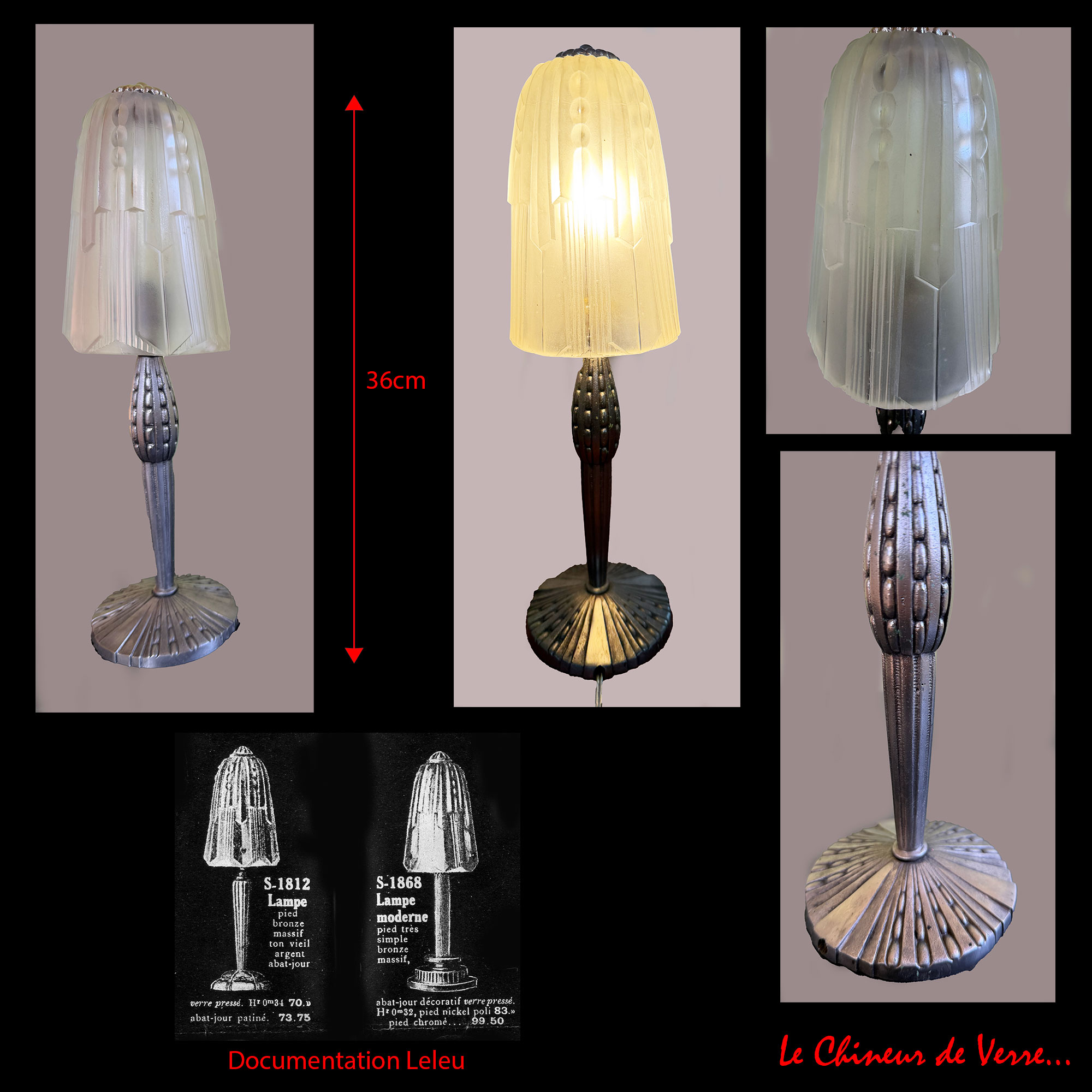 Les verreries ne sont pas signées mais la documentation jointe de la maison Leleu reproduit les mêmes modèles avec des pieds sensiblement différents.